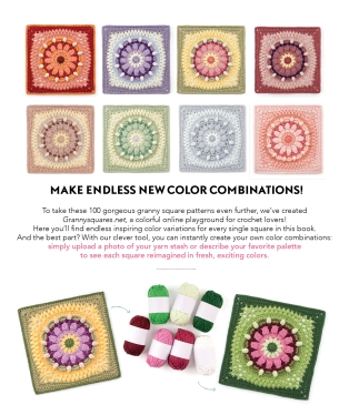 • Discover and create your own color variants for each granny square, using the brand-new interactive tool.