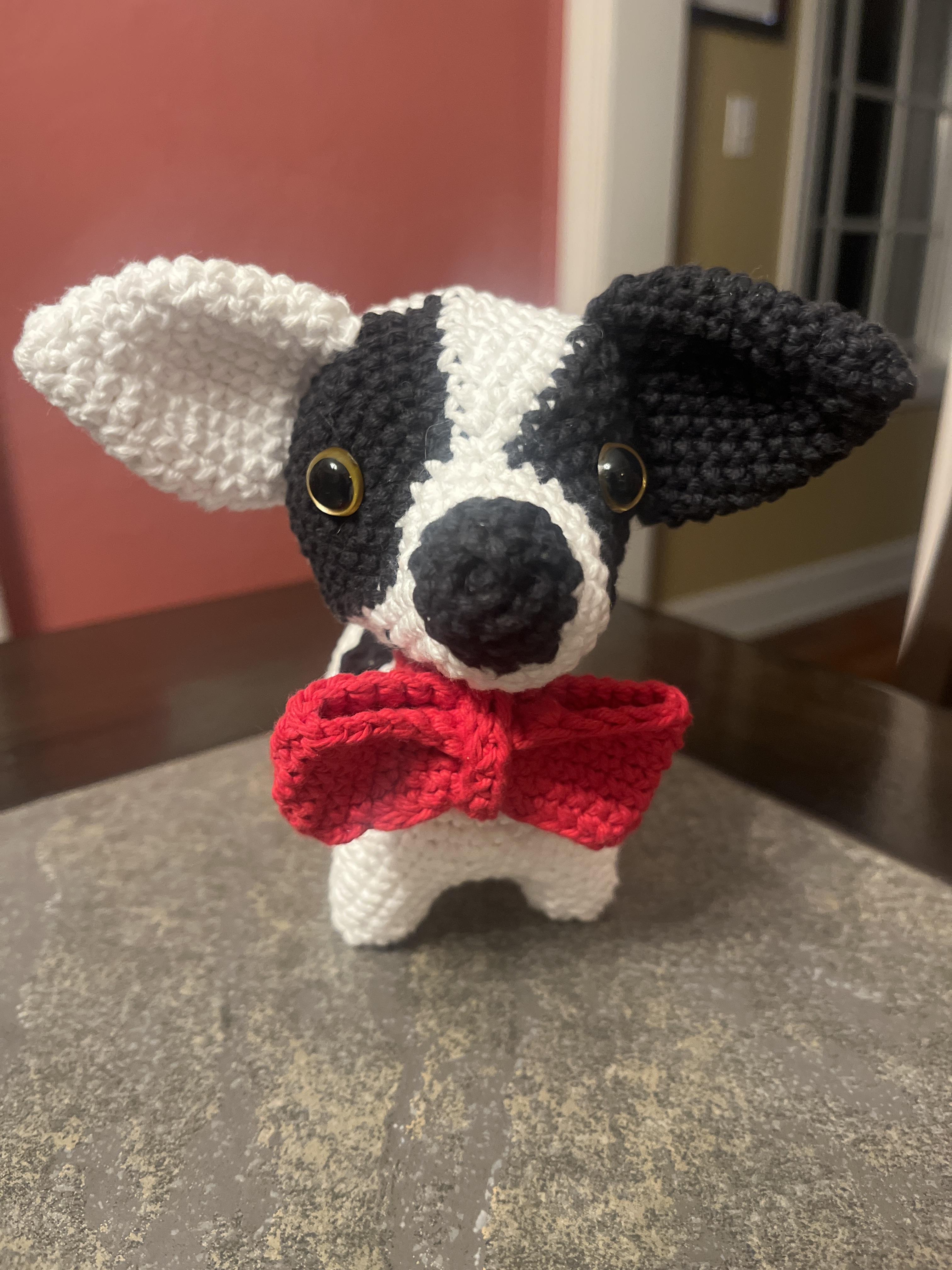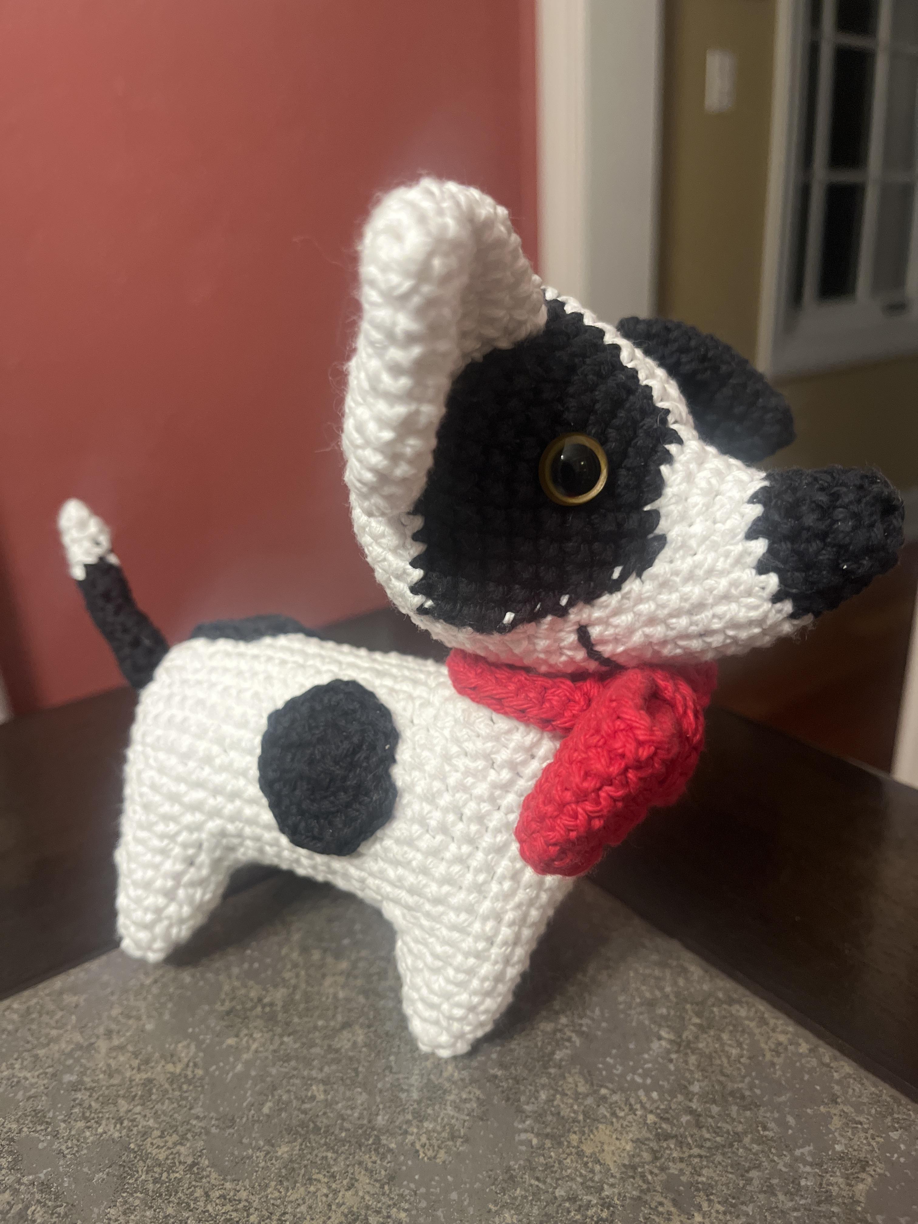 Yes, this is my very first amigurumi. I crocheted doilies in the past so I know stitches and how to read patterns. My dog is a mix of BassetHound and Louisiana Catahula so he has short legs and gets signature spots.