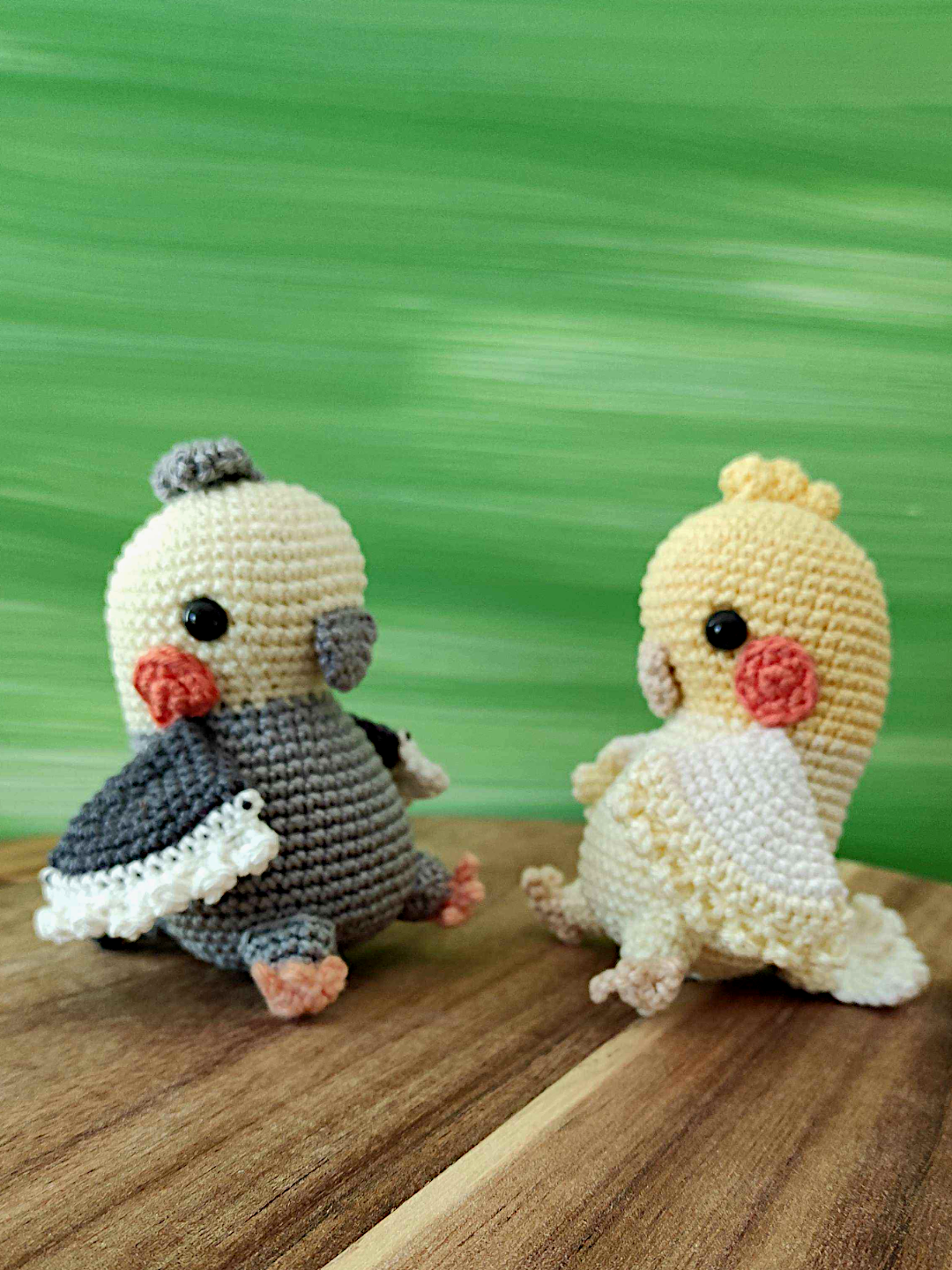 Celeste the Budgie and Sole the Cockatiel from Colorful Crochet Birds