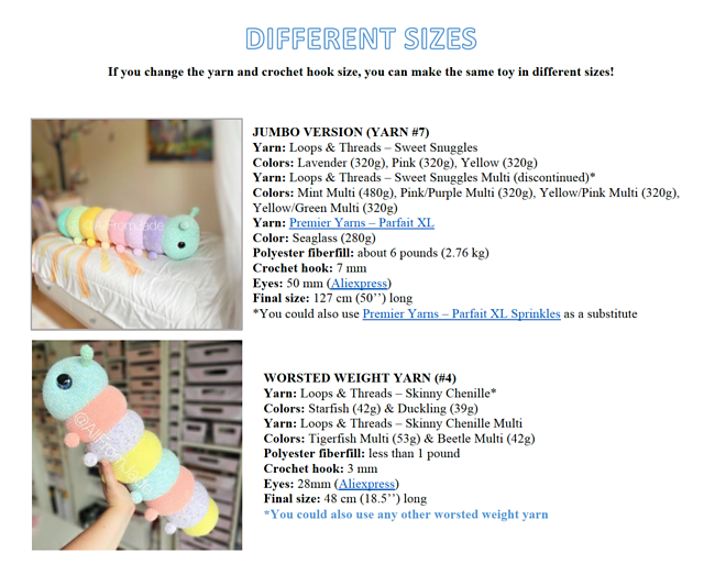 - Information to make it with 2 different types of yarn (see last picture of listing)