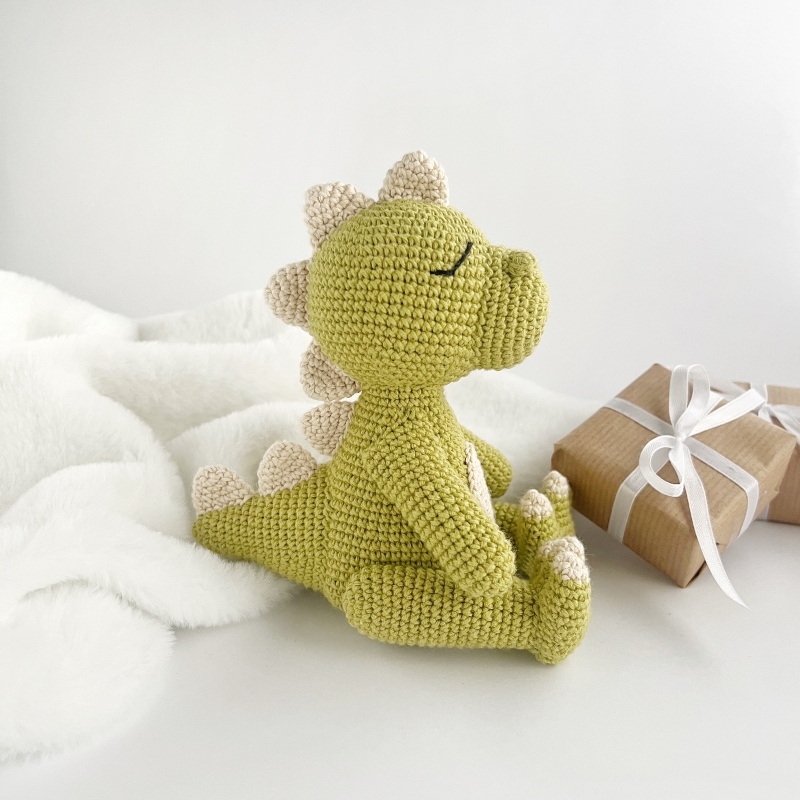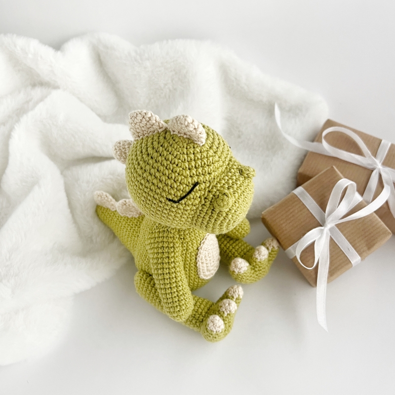 Create your own cute crochet dinosaur with this detailed, easy-to-follow PDF pattern.