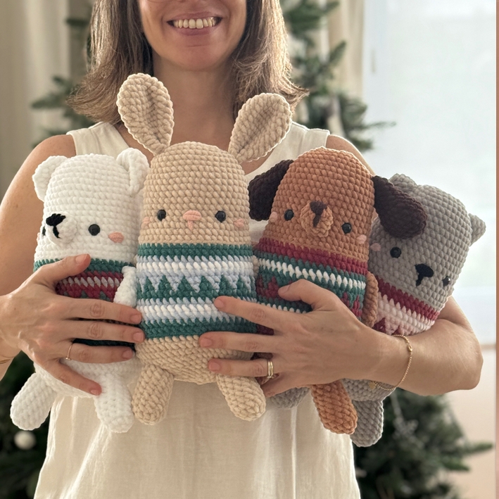 This pattern brings the instructions to crochet all 4 animals: Dog, Cat, Bunny and Polar Bear!