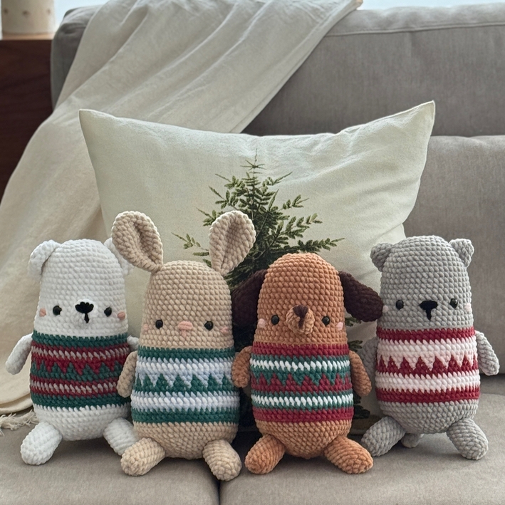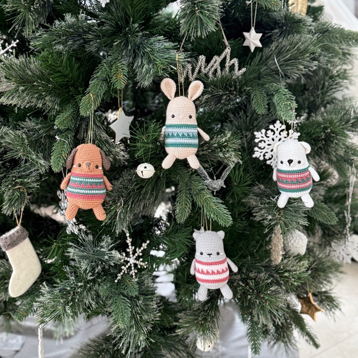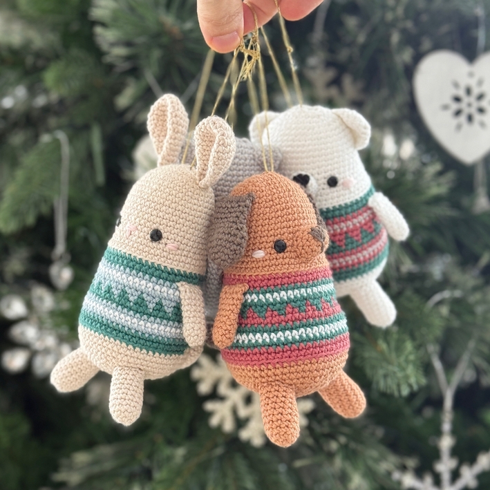 Oh no! You love crochet animals in Christmas sweaters but you don't want them this big... No worries! Crochet them with a 2.50 mm hook and fingering yarn (8/4) and turn them into ornaments to decorate your Christmas tree! The possibilities and color combinations are endless!