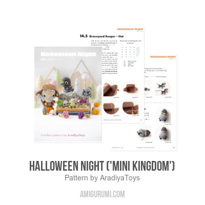 Halloween Night – the Halloween-themed set of toys from the 'Mini Kingdom' collection. This pattern describes how to create the following four toys: Graveyard Keeper, Graveyard (with three different tombstones, a baby zombie, a night flower and a zombie’s hand), Raven and Baby Spider.
