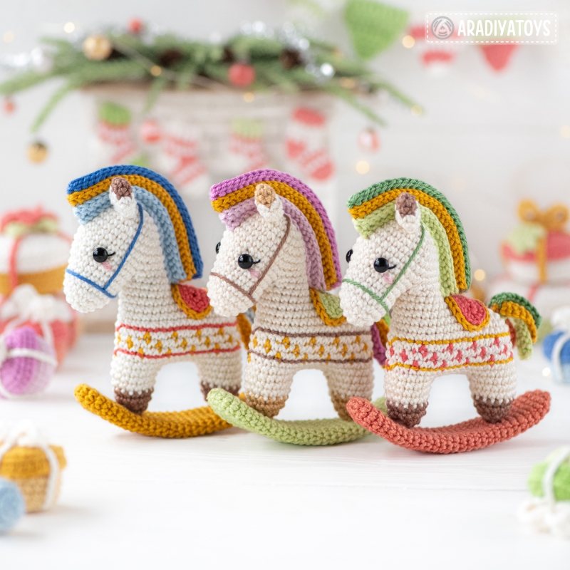 Rocking Horse: milky white (105), gold (249), blue (173), dark blue (261), leftover of light red (408), red (252), brown (438)
