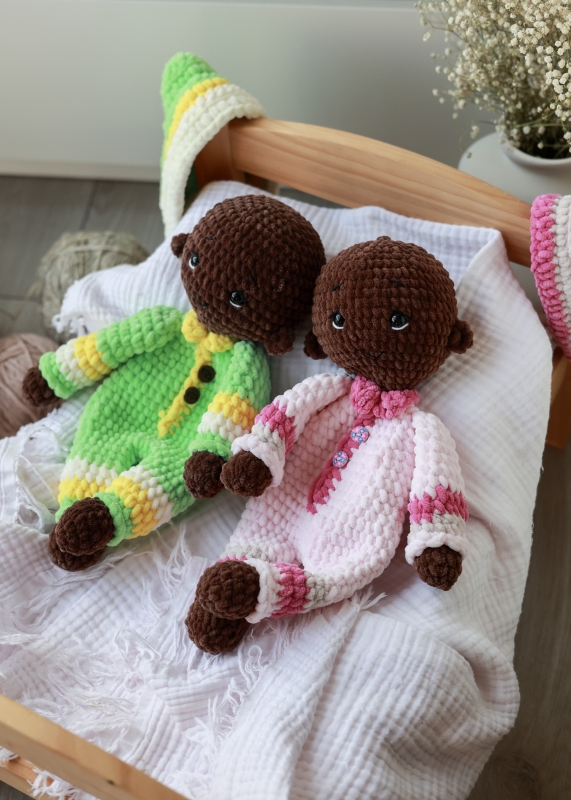 Create a sweet and cuddly pair of baby dolls with this easy crochet pattern! Designed with a soft snuggler-style body (unfilled and cozy), these plush babies are perfect for gifting, cuddling, or nursery decor.