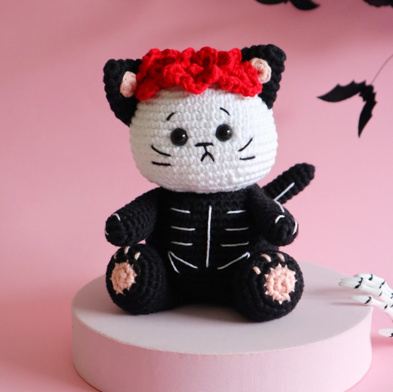 Kuro is the cutest skeleton cat on the block! By using simple stitches combined with embroidery this little skeleton cat comes to life.