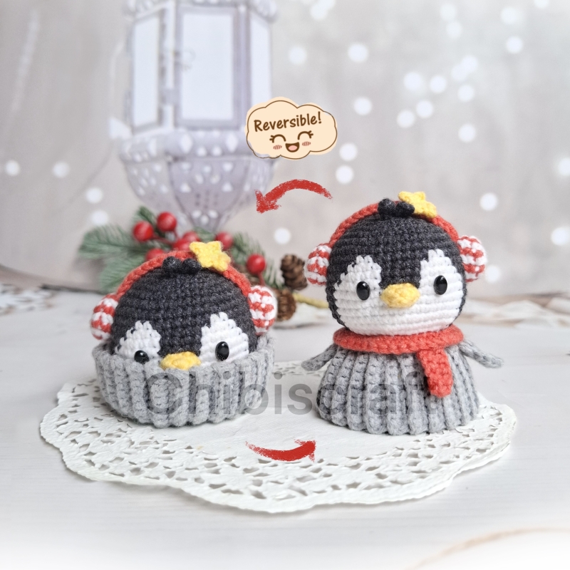 Meet the Reversible Penguin Cupcake that can turn into a cute little penguin. It will be Perfect as a toy or decoration to celebrate Christmas. This amigurumi will be a unique, original toy for you or a special gift for your loved one.