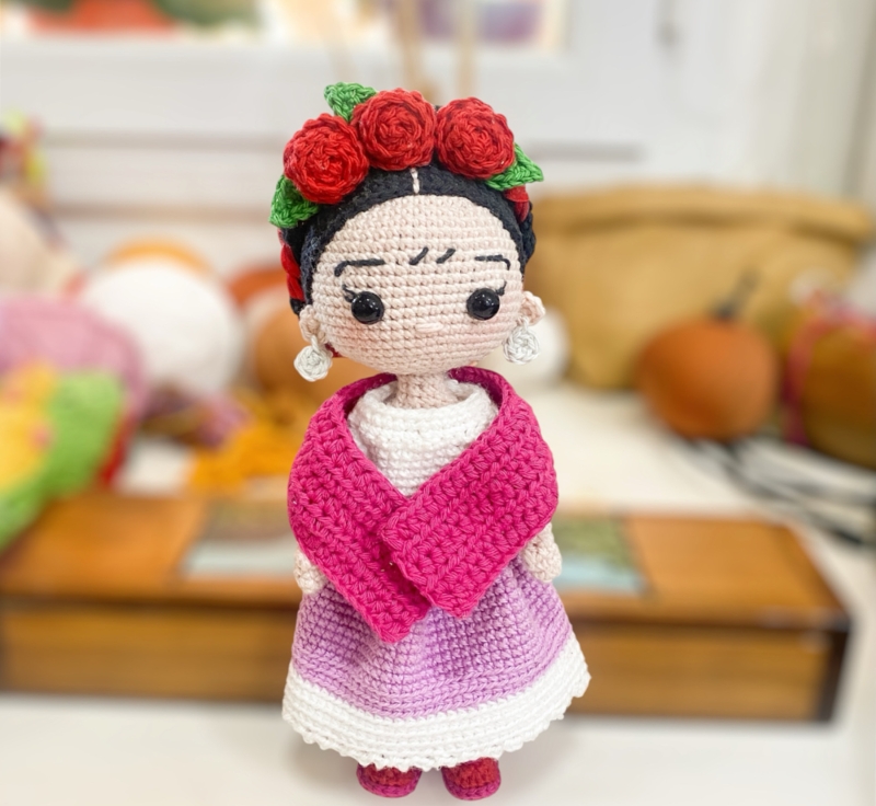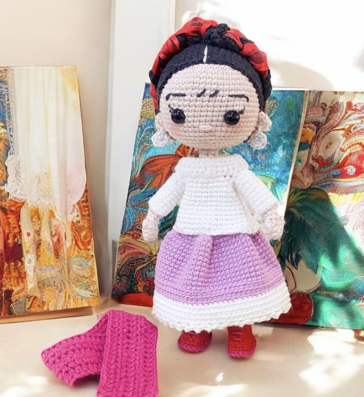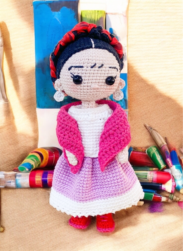 Fridita is a beautiful amigurumi doll version inspired by Frida's passion, art and courage.