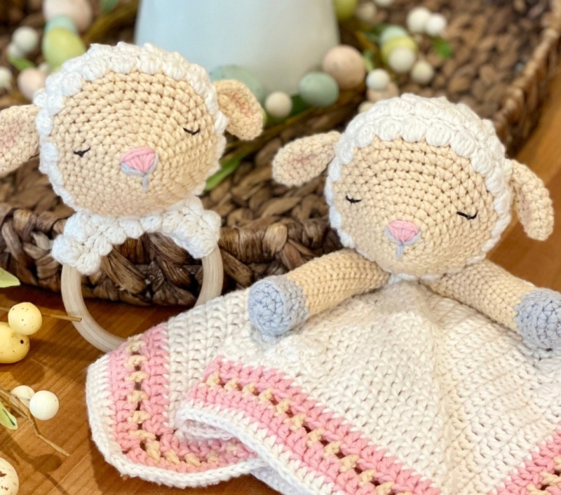 ?Crochet this sleepy Lamb Lovey and Rattle set and you'll have the perfect handmade gift for a baby shower or for baby's first Easter. This pattern set includes directions for both the lamb lovey and the lamb rattle.