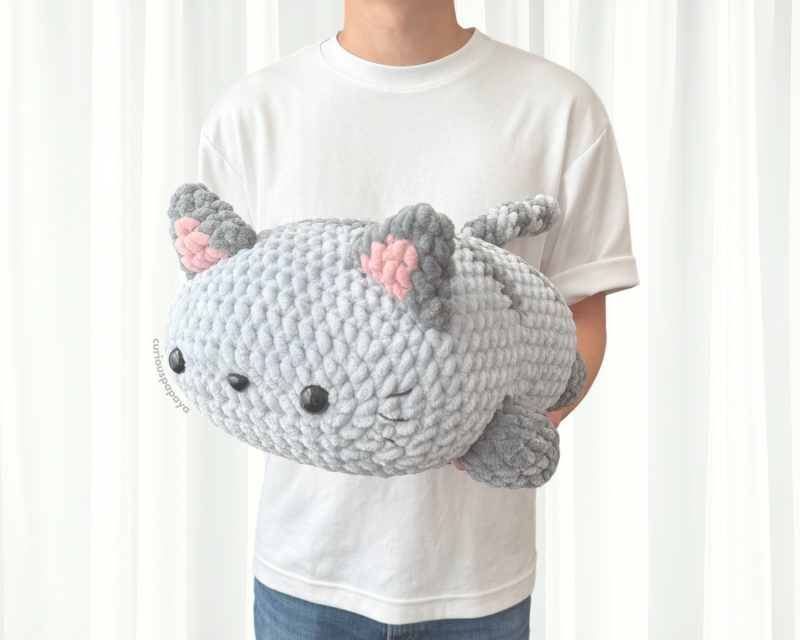 Meet Cleo (short for Cleopatra) the Giant Cat, the 10th addition to the Giant Pillow Plushies series. If “grab life by the horns” took a feline form, Cleo would be it. She proudly waddles into any room and has zero stranger danger, always making unlikely friends with the creatures near her home. Cleo’s purrs can be heard from anywhere in the house, especially if her favorite tuna flavored treats are involved. Her secret weapon to elicit all of the “oohs” and “awws” is to plop over onto her side and give a sweet meow. Don’t be deceived though - this is NOT an invitation for belly rubs!