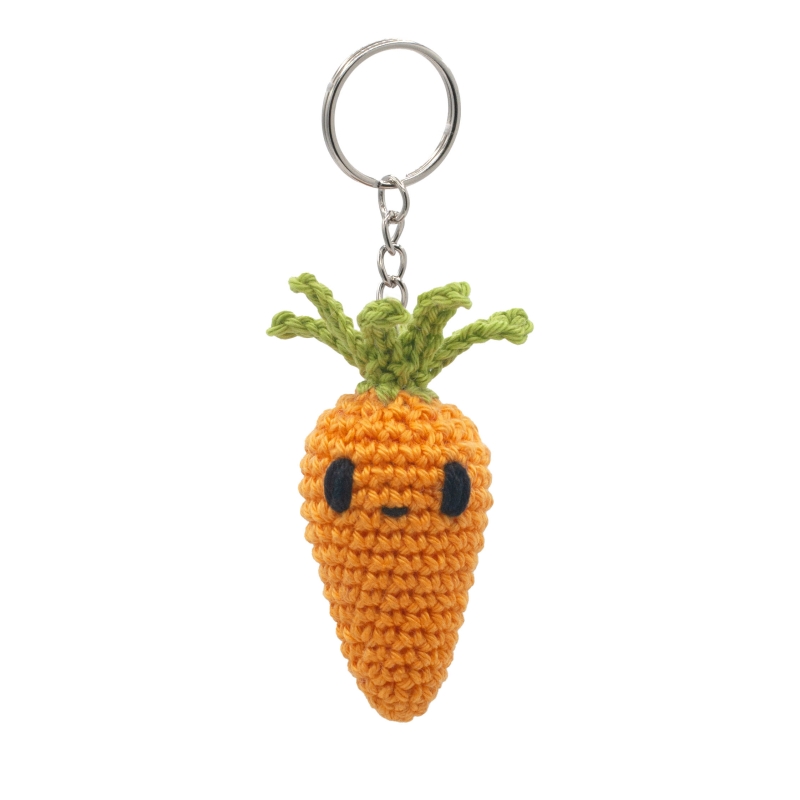 The small keychain sized carrot (3 inch/8 cm) on the photo has been made with a B/1 2.5 mm size crochet hook and catania yarn.