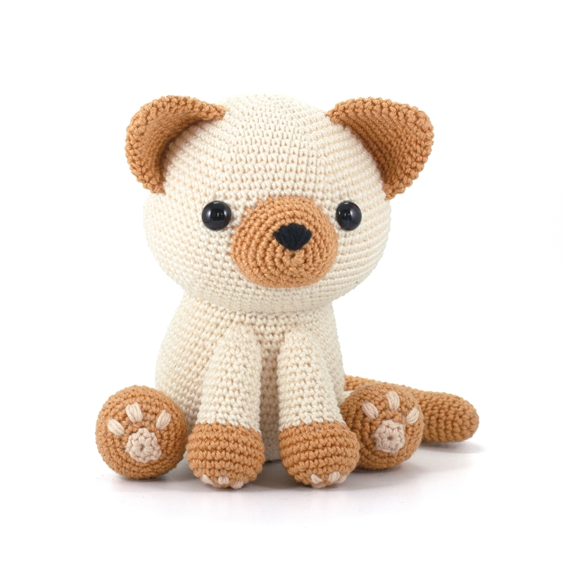 The cat (16 cm / 6 inch) on the photo has been made with a 2.5 4/0 size hook and catania yarn. You can replace them with other materials. If you wish to crochet a larger or smaller version of kitty cat, you can use a thicker or thinner yarn/crochet hook.