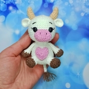 Measurement: If you use the recommended yarn and hook, the cow will be about 25 cm (9.8 inches) tall when standing and 19.5 cm (7.6 inches