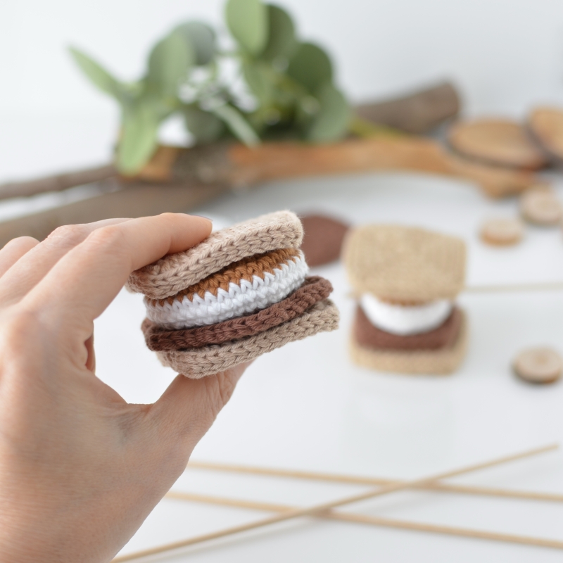 Measurement: Cracker 2” x 2” (5.5 x 5.5 cm) White Marshmallow 1" 3/8 x 1" (3.5 x 2.5 cm) Browned Marshmallow 1" 3/8 x 1" (3.5 x 2.5 cm) Ch