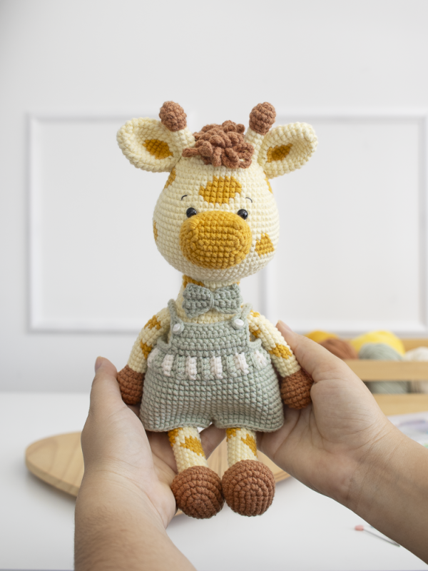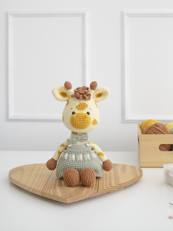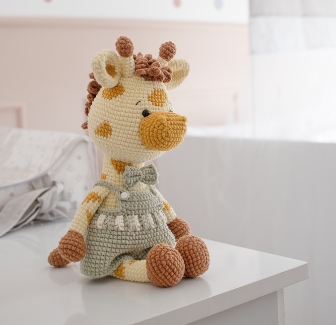 -The giraffe is 27 cm tall when standing and 20 cm tall when sitting.