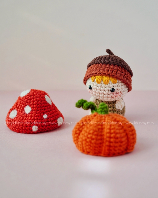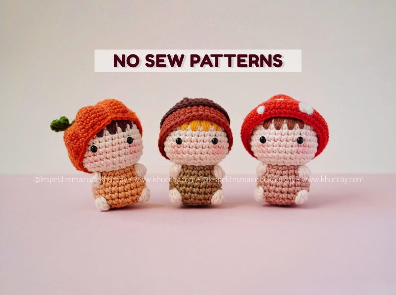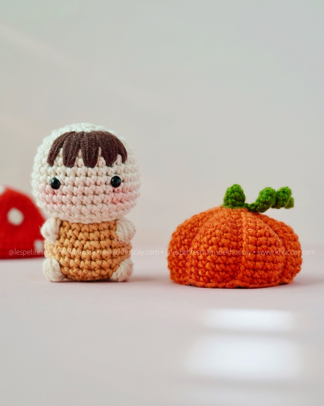 Yarn (1 skein for each color): Hobbii Picapau Nude Cotton ā skin 09, cappuccino 14, cashew 22, chocolate 29, dark brown 30; Picapau Cotton 8/7 ā Olive 20, Brick 15, Yellow 23; DMC Merino or Katia Basic Merino yarn ā orange, red, cream, green