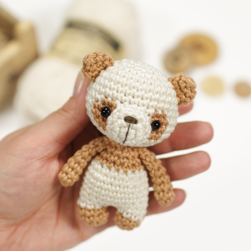 With this crochet pattern, you can make your very own little amigurumi panda bear. The pattern is easy to follow and covers the whole process from start to finish, including basic amigurumi techniques, and is illustrated with many step-by-step photos, making it easy to follow even for beginner toy makers.