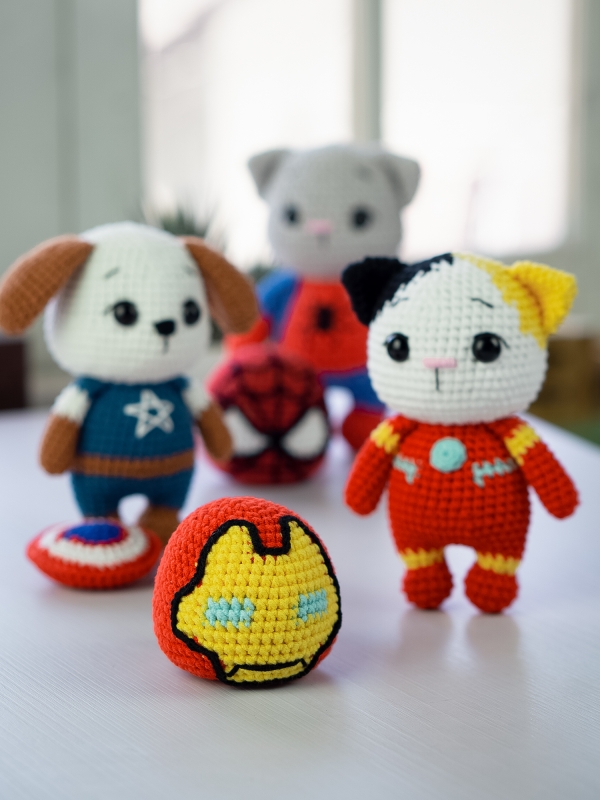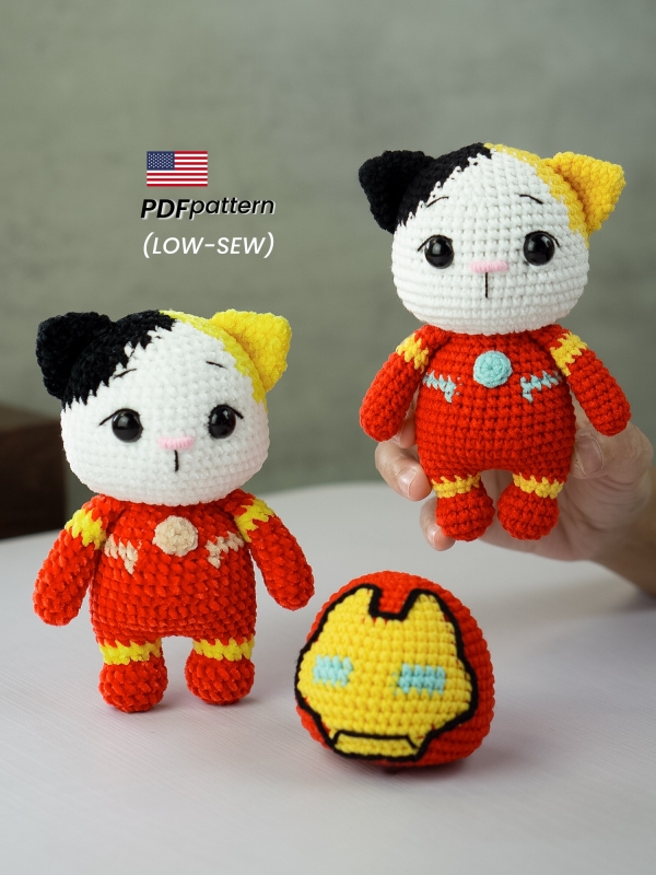 Ironpaw Cat is a small amigurumi cat character in a superhero-style outfit, designed with rounded shapes, minimal sewing, and a calm, beginner-friendly structure.