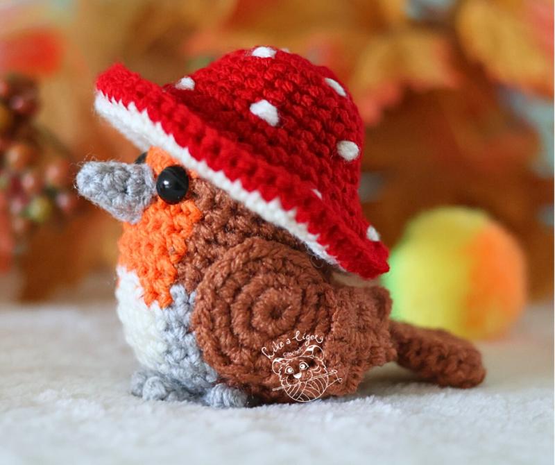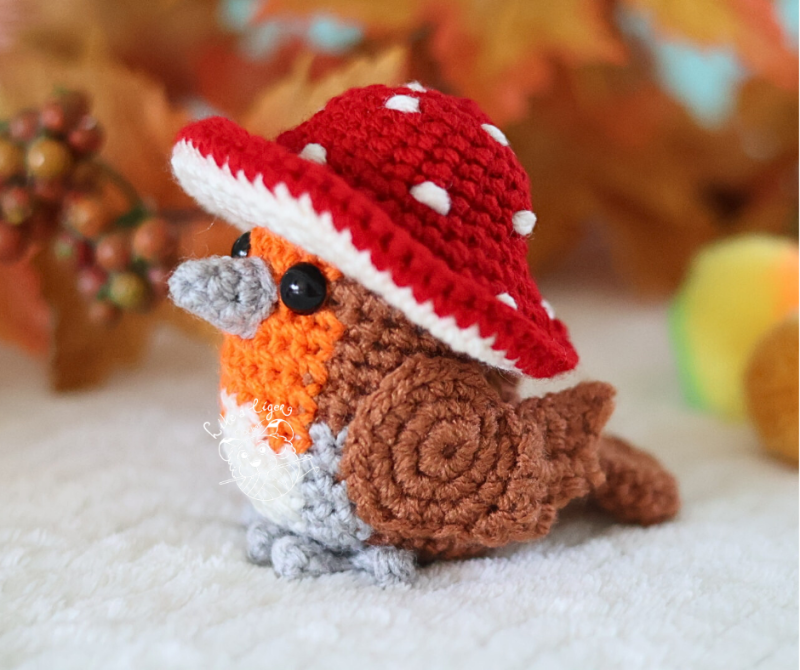 Isn't this little robin adorable wearing her mushroom hat? With this amugurumi pattern you can make your own!
