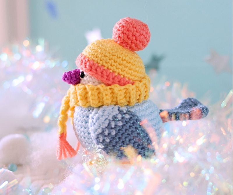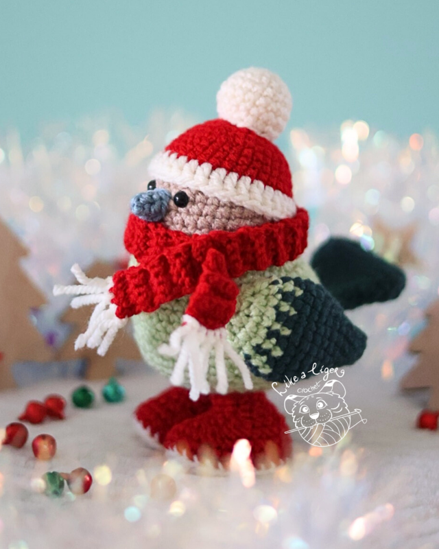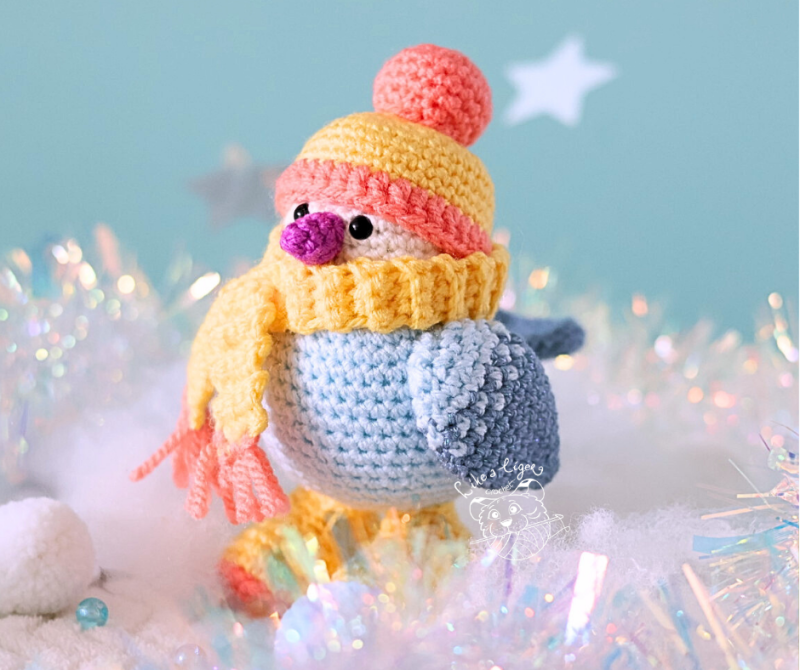 Meet Snowflake, the coziest little winter bird, ready to brighten your season with his adorable hat, scarf, and snowboots!