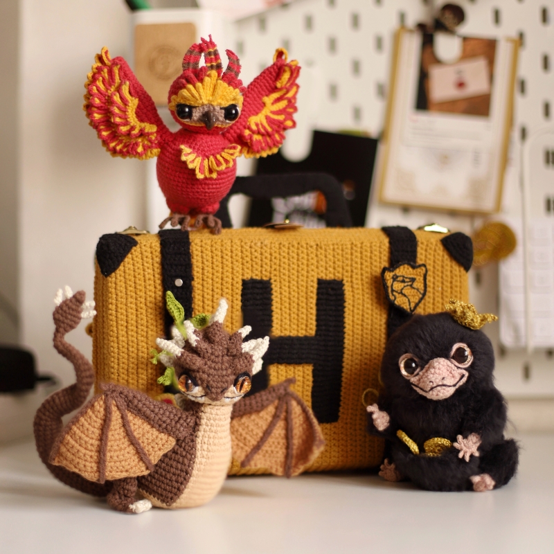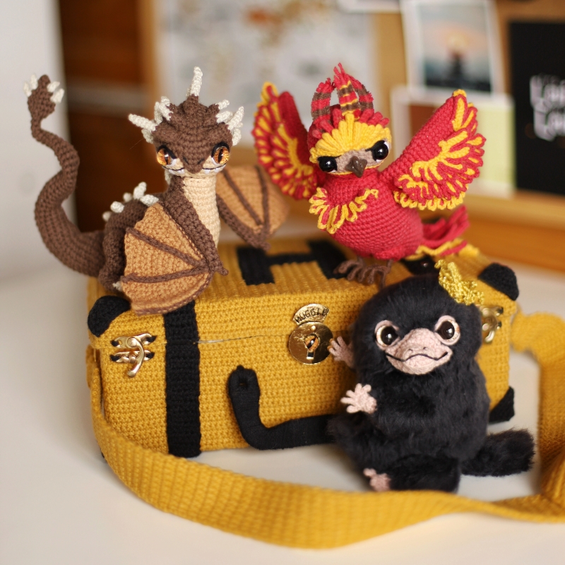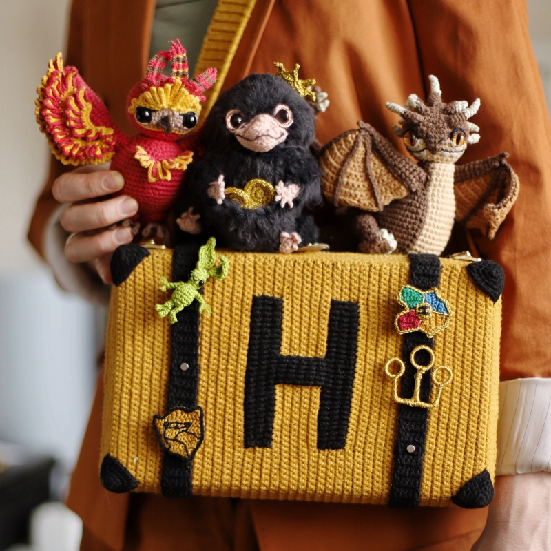 This listing is an original patterns (written in English using American terminology) to crochet your own Yellow Suitcase and magic beasts!