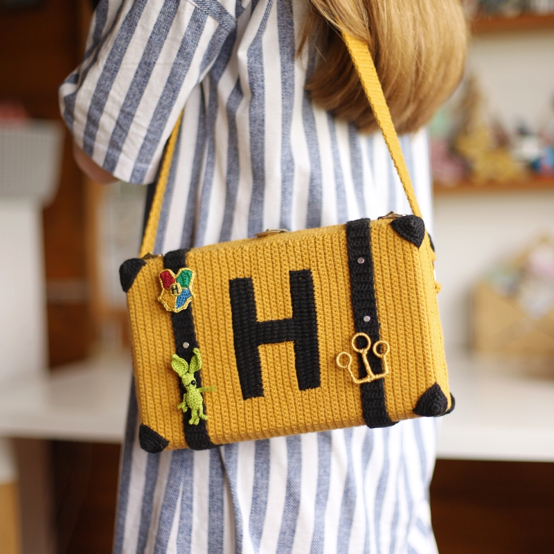 This listing is an original pattern (written in English using American terminology) to crochet your own cute Yellow Magic Suitcase from Hogwarts School of witchcraft and wizardry.