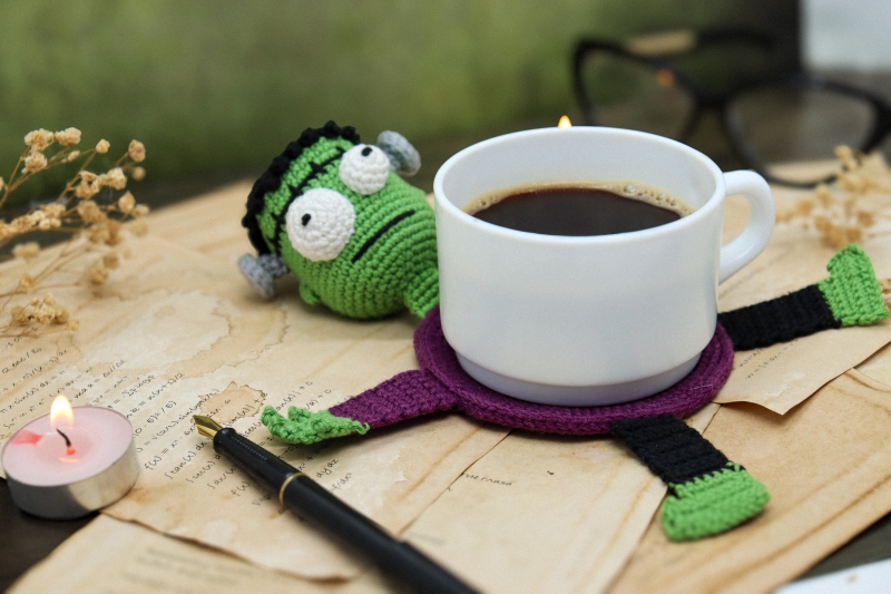 Add spooky charm to your coffee breaks with this handmade Frankenstein crochet coaster! This Splat Frank design brings a playful and creepy-cute vibe to your Halloween décor while protecting your surfaces in style. Perfect for horror lovers, Halloween enthusiasts, or quirky gift-givers