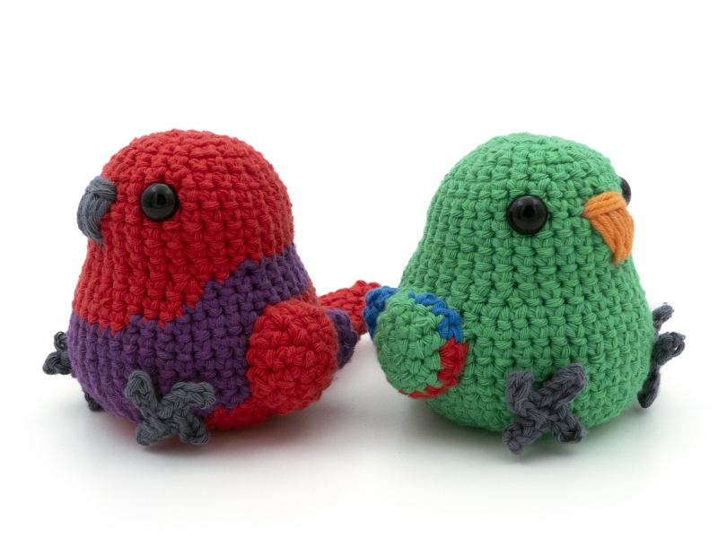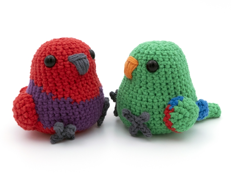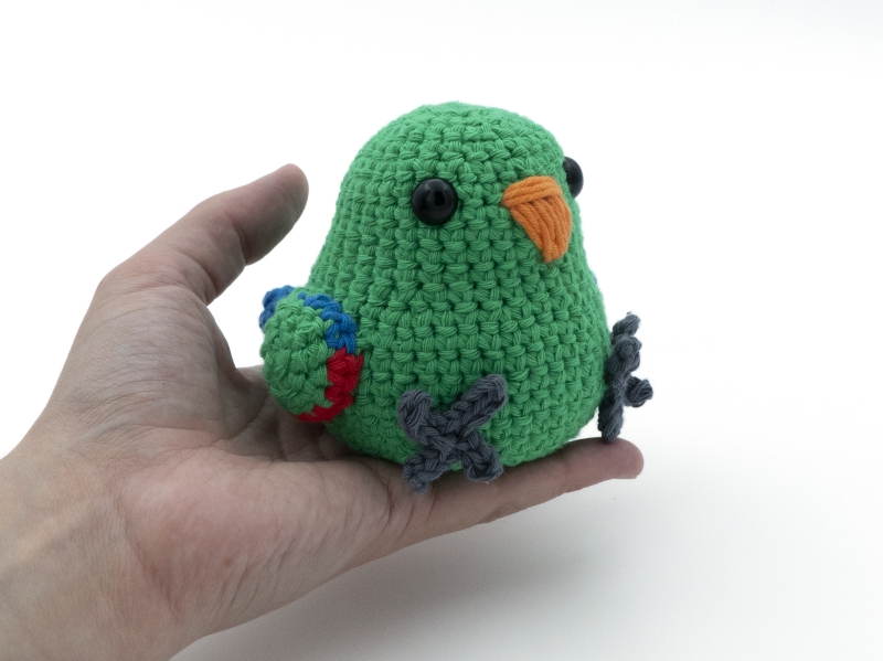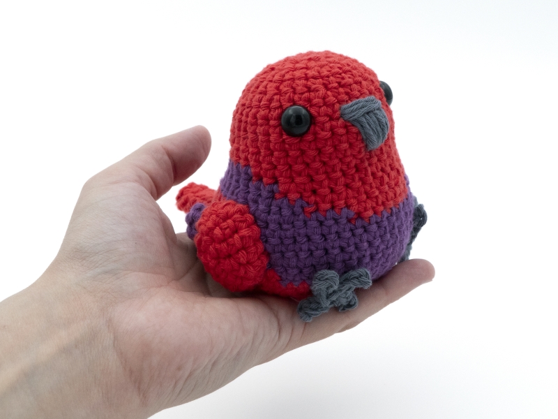If the recommended hook and yarn size are used the male and female Eclectus parrot plush will be approximately 10 cm (3.9 inches) tall (not including the head crest) by 10 cm (3.9 inches) wide.