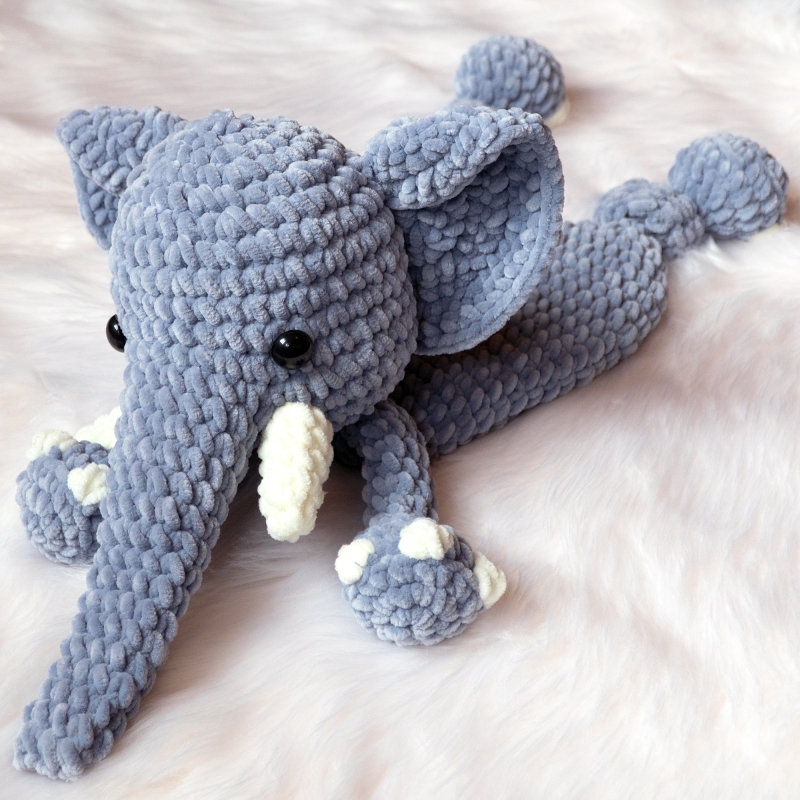 If the recommended hook and yarn size are used the elephant snuggler will be approximately 46 cm (18.1 inches) long by 25 cm (9.8 inches) wide.