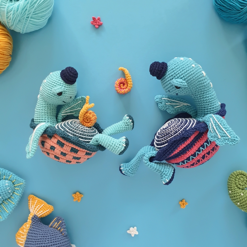 Discovery the vibrant and sparkling world of seaside amigurumi with Marcus the Turtle.