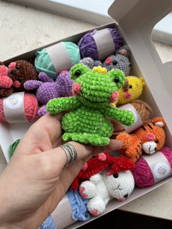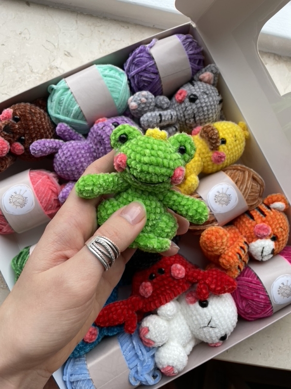 One skein of the main color is enough to make a toy from the pattern.
