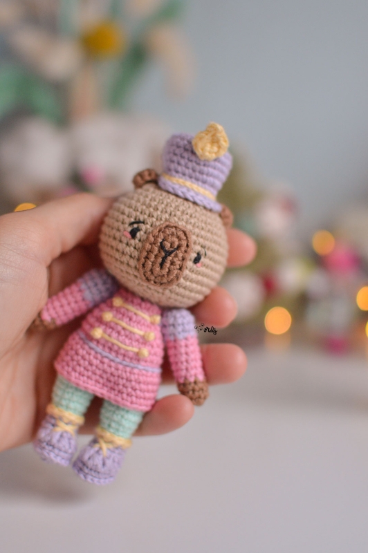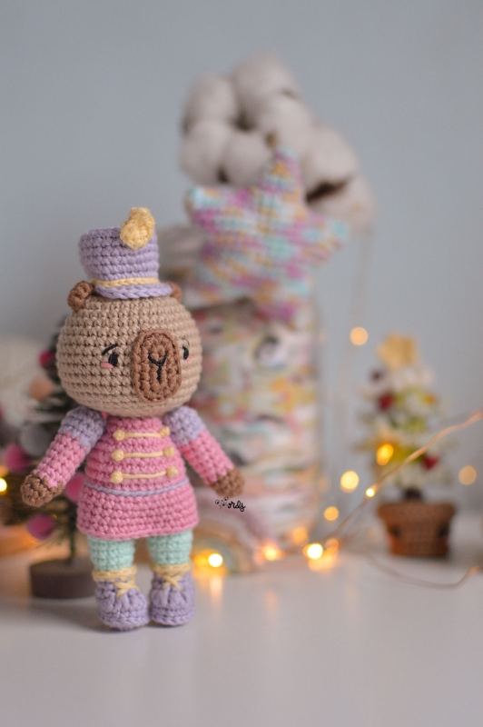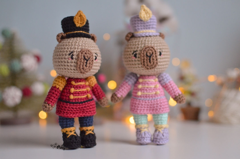 With the help of this pattern, you can crochet lots of adorable capybara nutcracker amigurumi, handmade by you. The pattern is easy to follow with many step-by-step photos of the entire process.