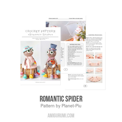 This pattern includes 27 pages and more than 150 photos of the detailed description of crocheting, assembly and decoration of the Romantic Spider with two hats, a scarf, a dress, a cute bag, a book and a bouquet. This way, you can make Mr. Spider or Lady Spider by choosing clothes and accessories for them according to your preferences.