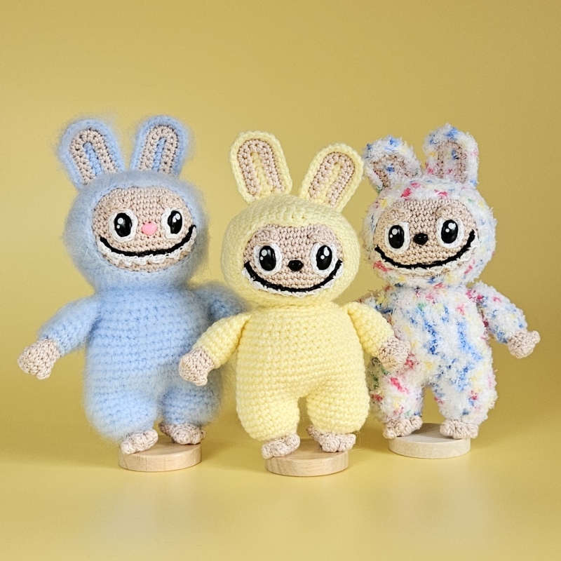 Stitches used: chain, slip stitch, magic ring, single crochet, increase, (invisible) decrease, half double crochet, double crochet, back loops only, front loops only, triple crochet, bobble stitch