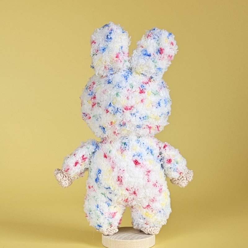 He wears a fluffy suit in bright pastel colors with long rabbit ears and radiates pure joie de vivre.