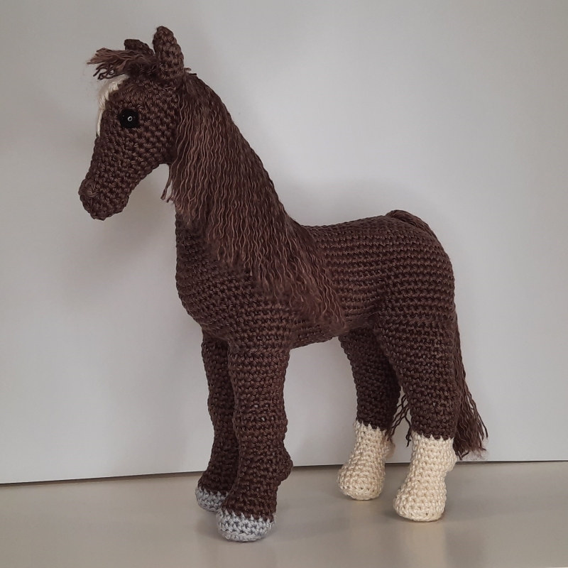This enchanting dark brown horse with a brown mane and gray hooves looks like it came straight from nature.