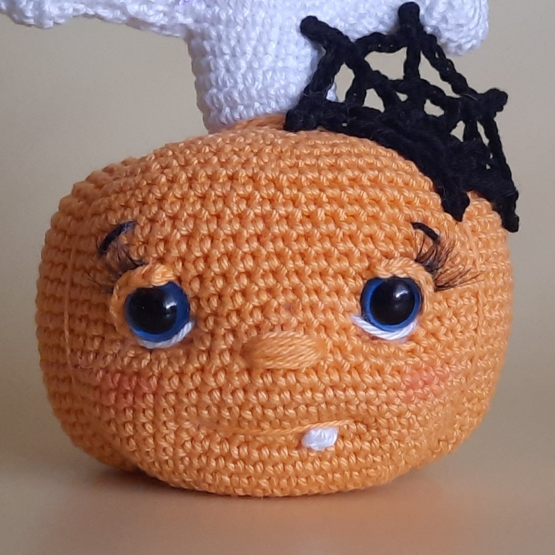 He has a little black spider web with him, which gives him an extra touch of spookiness.
