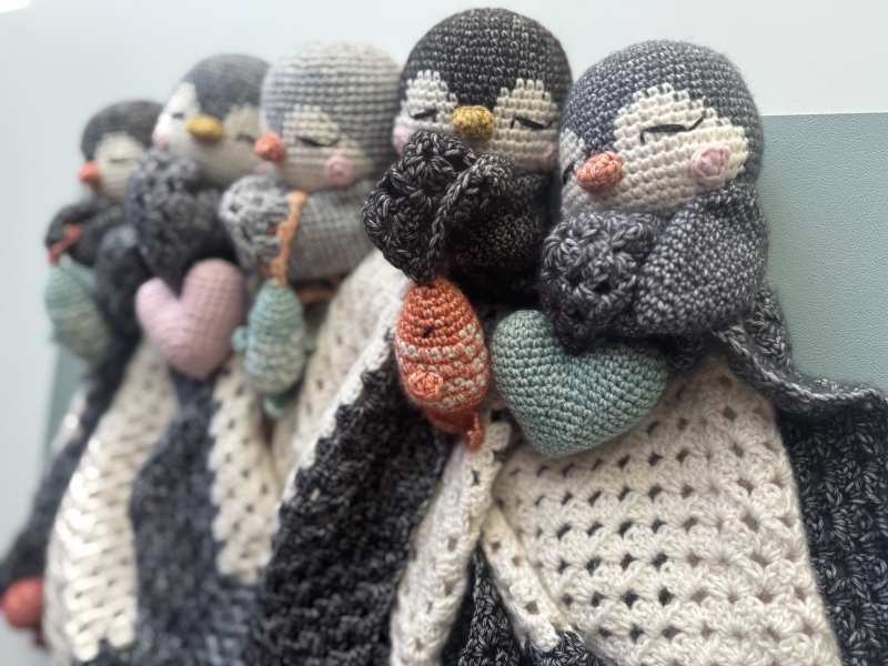 Shuffle the Penguin Lovey is a crochet animal attached to a granny square blanket. Perfect for teaching new babies to snuggle, and bring comfort and sweet dreams.