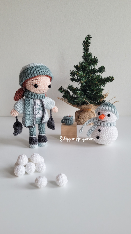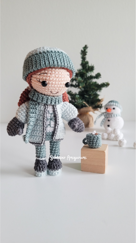 - This patterns contains instructions to crochet the girl, coat, hat, scarf, mittens, snowman, hat, scarf, snowballs, mug, hot chocolate
