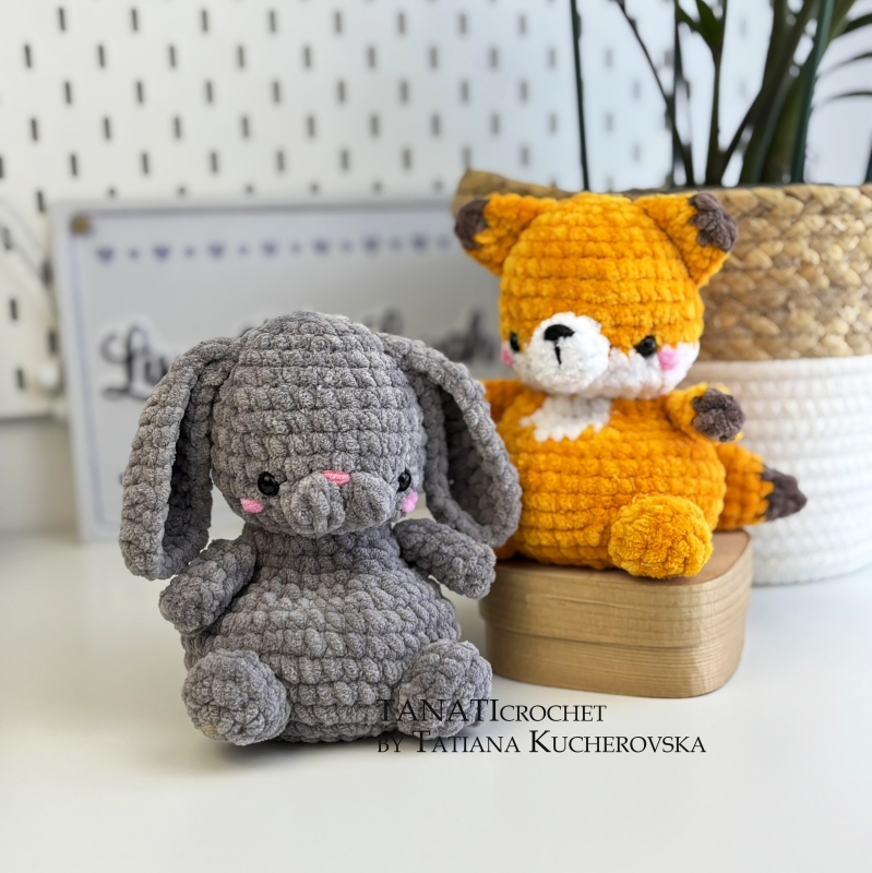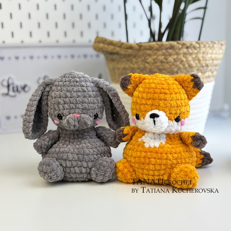 Cute Fox & Bunny with poly pellets – size 16 cm (5in), if using bulky weight yarn (Bulky (7 wpi), 5: Bulky).