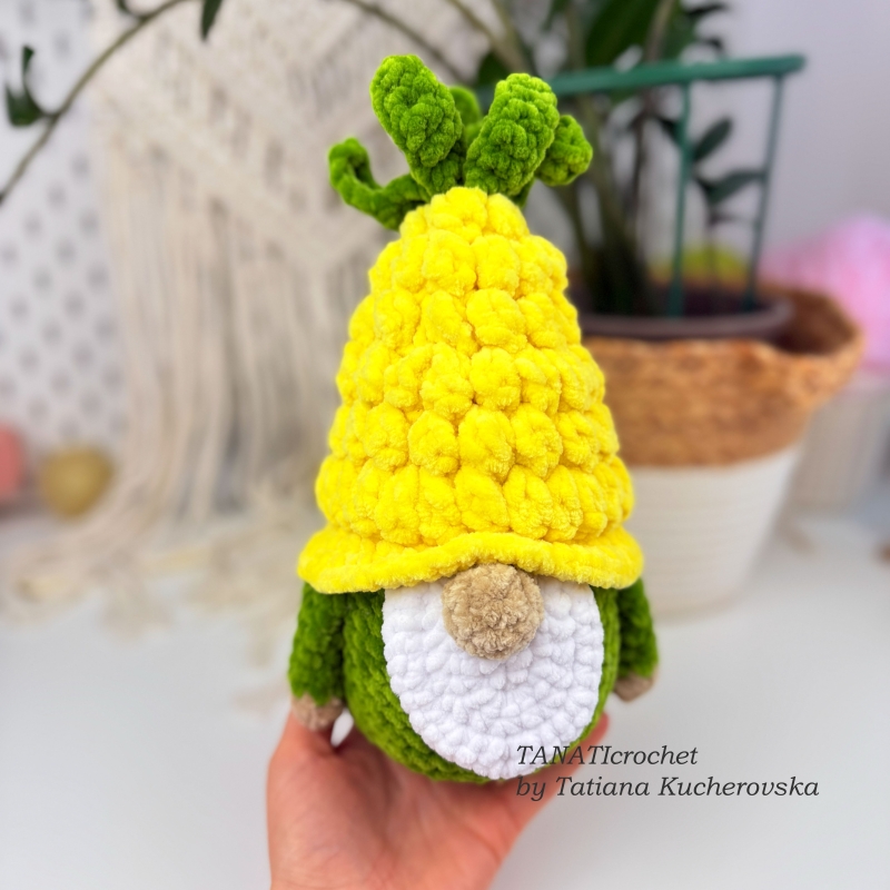 Crochet pattern Gnome Pineapple - Size 22 cm (8 in), if using bulky weight yarn (Bulky (7 wpi), 5: Bulky).