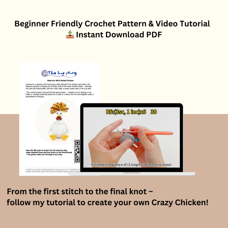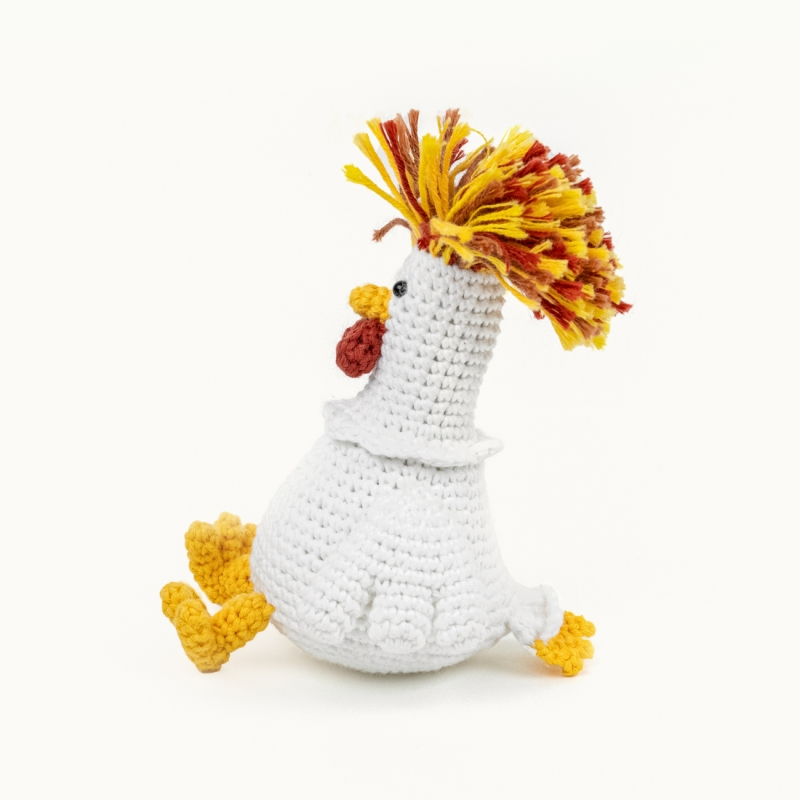 They’ve got the most fabulous fluffy crest — like natural rockstars of the chicken world.This little crochet hen is my tribute to them.