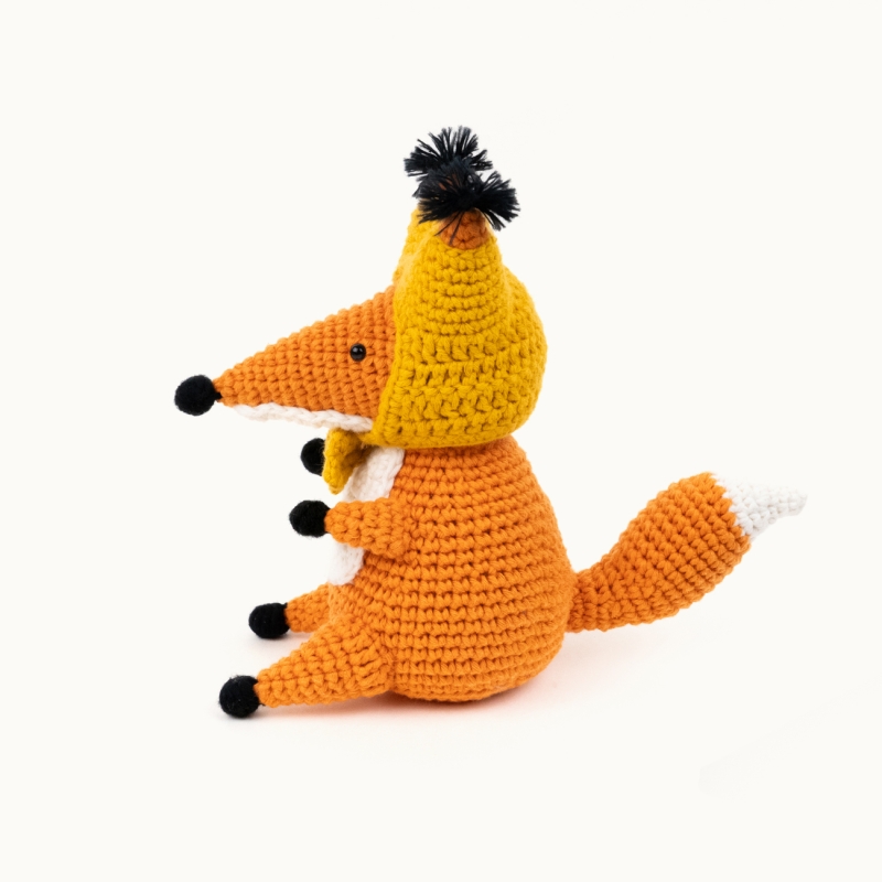 Our little fox is ready for an adventure. She’s packed light — just her soft yellow hood, her favorite scarf, and a heart full of curiosity.