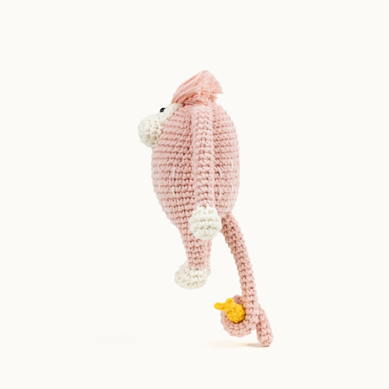 Not your usual monkey. She’s cute, sweet, and truly one of a kind. She has one little obsession: bananas, just the perfect tiny one tucked on her tail, ready for any mid-day snack emergency.