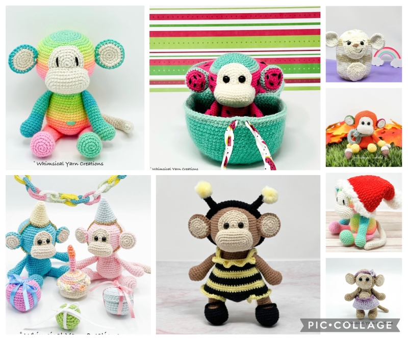 Thes patterns are written in US terminology and are mainly worked in the round. Each monkey is made using the "x" technique (yarn under/yarn over).