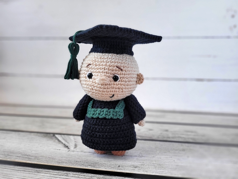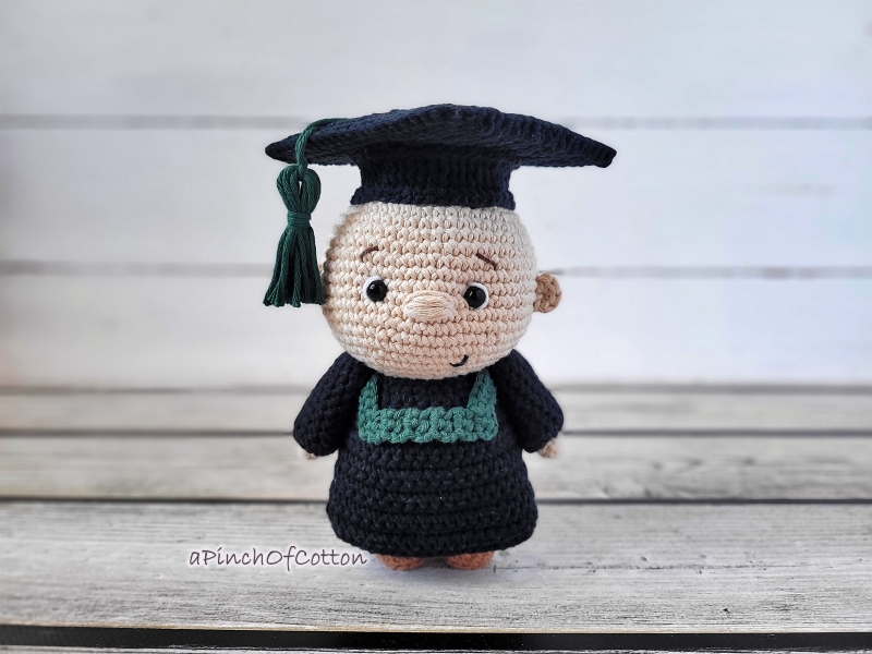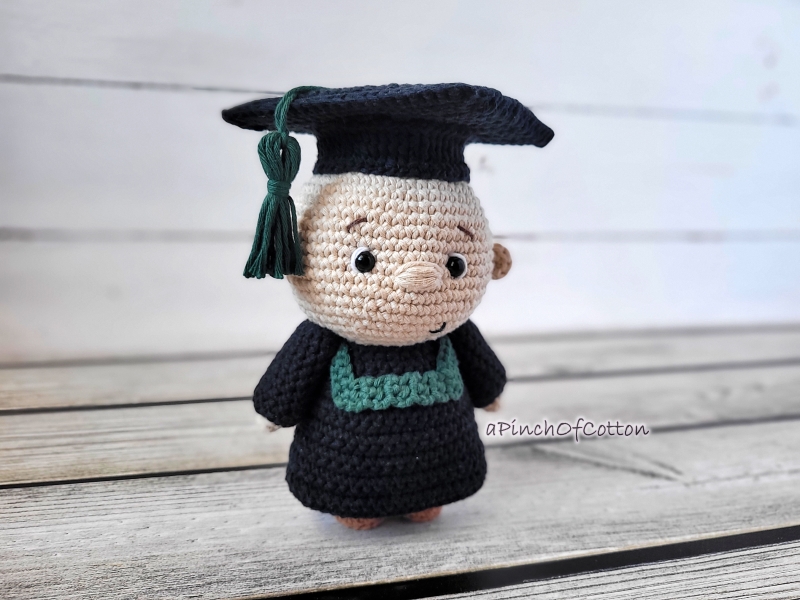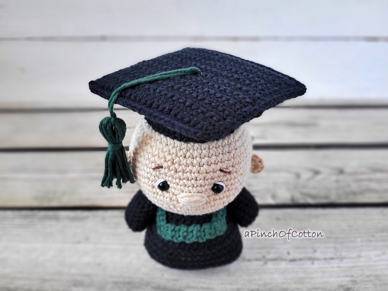 This crochet pattern contains detailed and easy to follow instructions (28 pages) of how to make the crochet graduate. It also contains a lot of step-by-step photos and helpful notes and tips throughout the pattern.