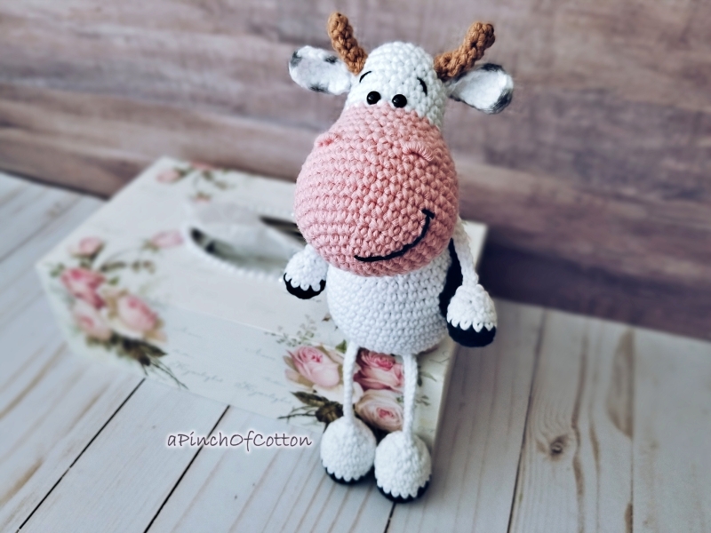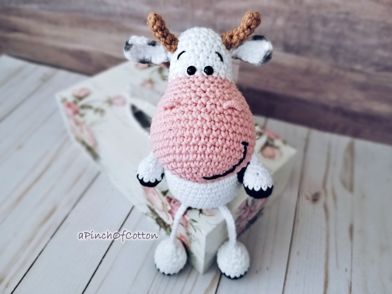 This crochet pattern includes 21 pages of detailed, easy-to-follow instructions for creating an adorable crochet cow. The PDF features clear written directions accompanied by numerous step-by-step photos, helpful notes, and tips throughout to guide you every step of the way.