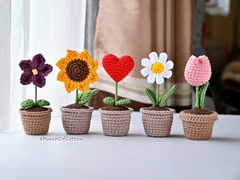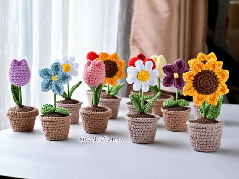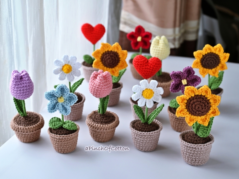 This crochet pattern includes over 80 pages of detailed, easy-to-follow instructions for creating adorable, crochet flowers in a pot. The PDF features clear written directions accompanied by numerous step-by-step photos, helpful notes, and tips throughout to guide you every step of the way.