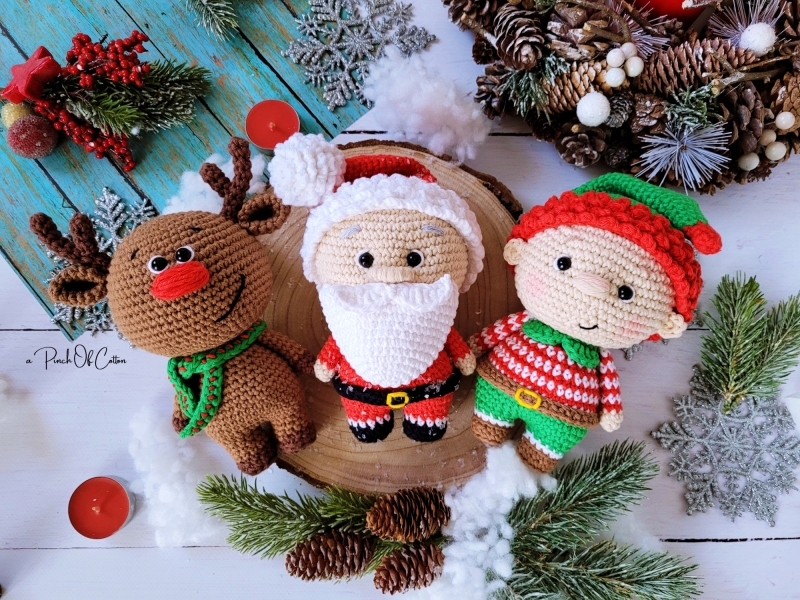 This crochet pattern includes 73 pages of detailed, easy-to-follow instructions for creating crochet Santa Claus, elf and reindeer. The PDF features clear written directions accompanied by numerous step-by-step photos, helpful notes, and tips throughout to guide you every step of the way.